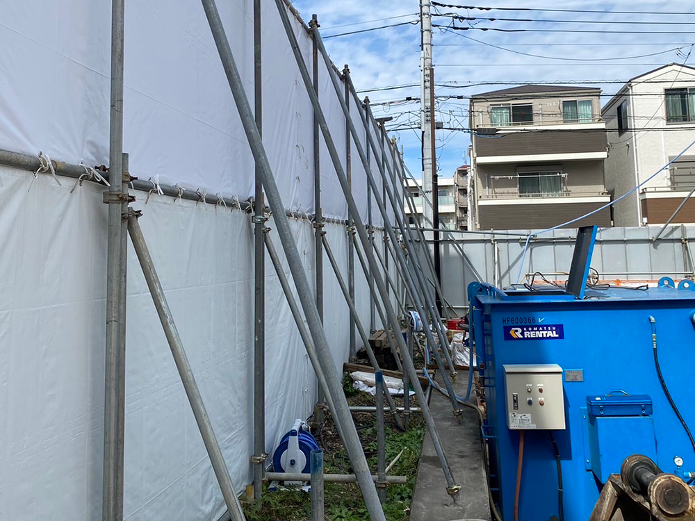 仮囲いを設置することで、工事関係者以外の立ち入りを防ぎ、通行人の安全を守るほか、工事時の粉じん・ホコリや騒音を外部へ出さないようにすることができます。